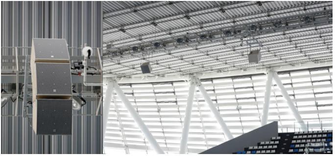 經過再三研究、博世團隊借鑒了之前給倫敦碗提供的安裝方式,邀請了專業的設計人員在每個鎖頭上設計了一個安裝點并安裝滑輪,通過卷揚機把揚聲器卷上去,當檢修時則采用同樣的方式將揚聲器卸下,攻克了吊掛技術難點。