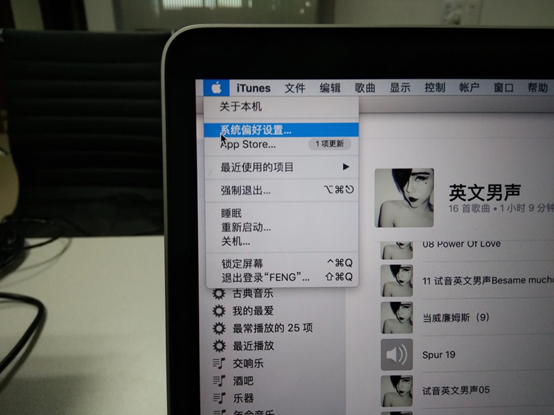 圖16:連接完成后,點擊屏幕左上角??標志,選擇系統(tǒng)偏好設置,點擊進入系統(tǒng)偏好設置界面。