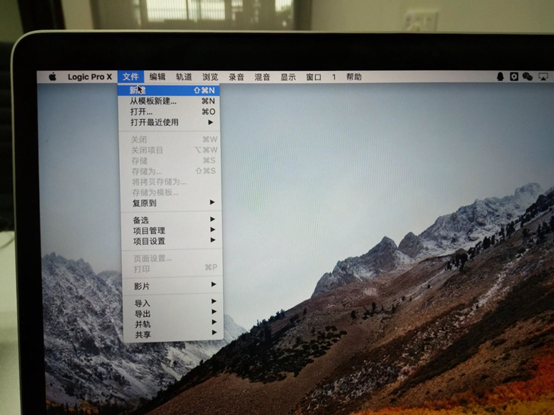 圖22:進入logic pro 界面后點擊文件選項,選擇新建一個項目。