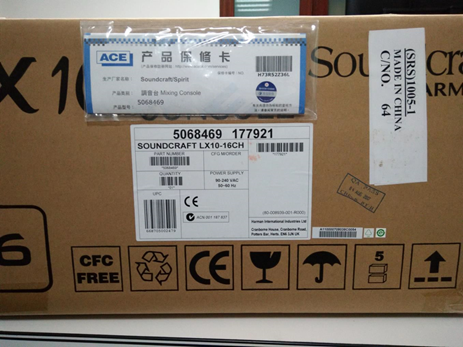圖3:包裝箱側面的產(chǎn)品條碼及總代理ACE出具的產(chǎn)品保修卡,請仔細核對,經(jīng)典產(chǎn)品市面水貨比較多需留意,另目前此款產(chǎn)品的國內總經(jīng)銷為廣州市銳聲燈光音響器材有限公司,一家專做國外知名品牌的代理專業(yè)音頻公司。