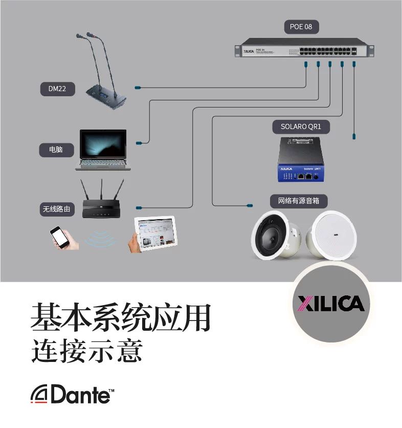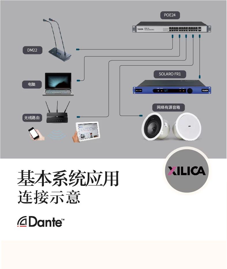 Dante數字音頻傳輸技術,是一種專業、無壓縮的、基于3層的IP網絡的新一代網絡音頻傳輸技術。它和傳統的音頻傳輸有著很大的區別,它僅使用一條網線就可以傳輸數字音頻、供電和控制同時進行,省去了極大的建設成本,減少了不必要的人力和財力。