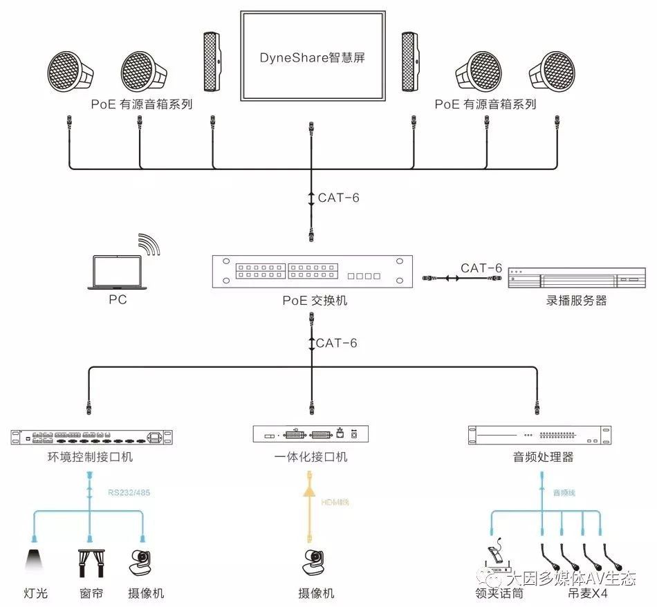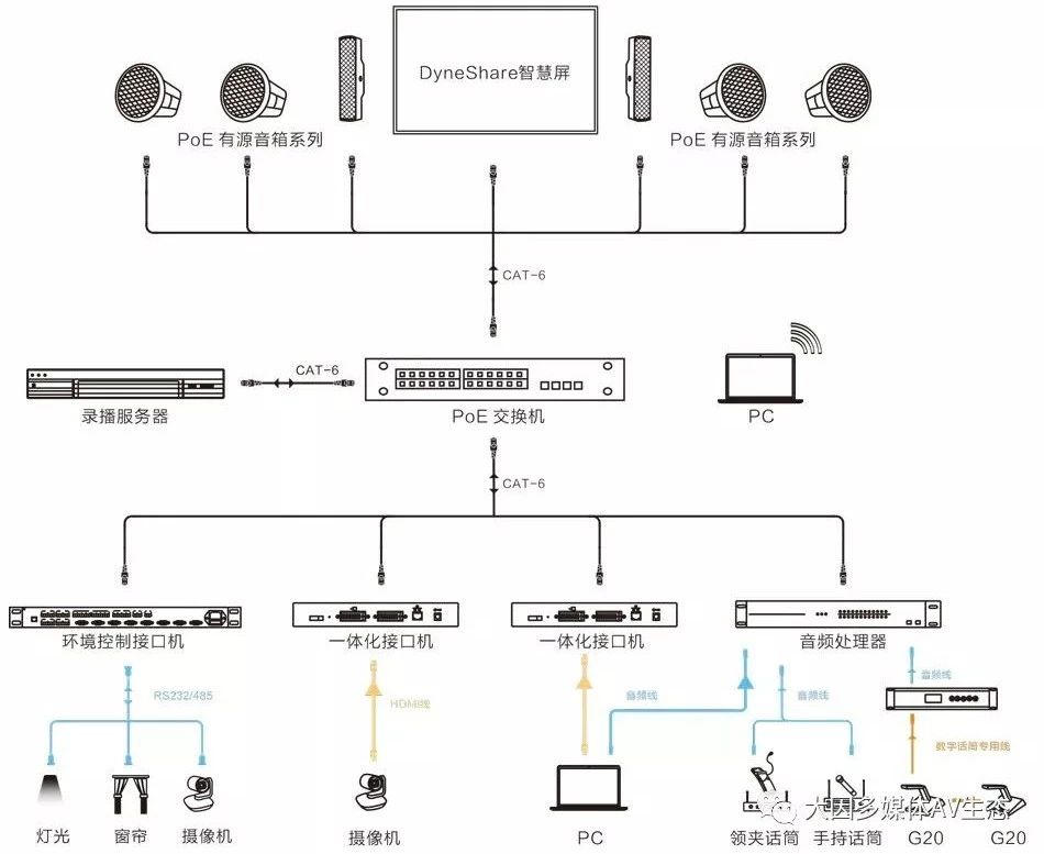 教室是學(xué)校最常見的場所,但是教室的大小、用途、使用人(教室和學(xué)生)卻不盡相同。雖然有所區(qū)別,但每間教室授課時所需要的音視頻系統(tǒng)非常類似。此類音視頻系統(tǒng)的建設(shè)必須方便教師的使用,而且也要滿足學(xué)生清晰明了地觀看和聆聽上課內(nèi)容,老師上課的內(nèi)容和分析方便學(xué)生打包帶走。不僅如此,系統(tǒng)的使用必須簡單,方便教師和學(xué)生的獨自使用。