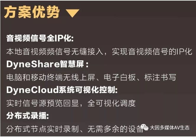 DANACOID通過DyneCloud 智慧云屏系統(tǒng),打造教育行業(yè)的全IP化的解決方案,通過分布在教室內(nèi)的輸入輸出接口機和智慧云屏系統(tǒng)將音頻、視頻、控制信號通過網(wǎng)絡(luò)進行傳輸、管理和控制,實現(xiàn)教室與教室、學(xué)校與學(xué)校、學(xué)校與教育局之間的信息交互。