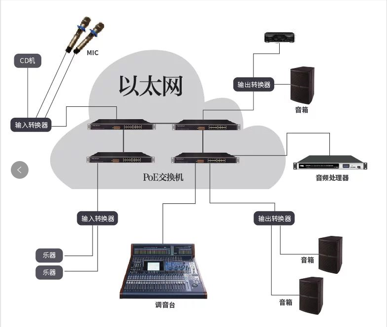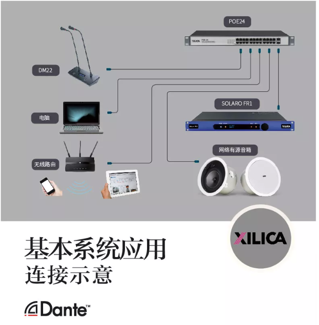 Dante數字音頻傳輸技術,是一種專業、無壓縮的、基于3層的IP網絡的新一代網絡音頻傳輸技術。它和傳統的音頻傳輸有著很大的區別,它僅使用一條網線就可以傳輸數字音頻、供電和控制同時進行,省去了極大的建設成本,減少了不必要的人力和財力。