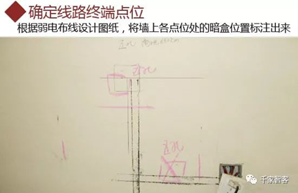 總的來說,弱電布線的重點在于設計布局,而安裝一般與強電一起進行,安裝的流程也基本一致,即按照定位、開槽、布線等步驟進行。