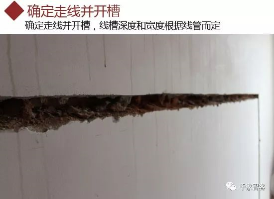 根據弱電線的多少確定線管的數量,進而確定線槽的寬度;線槽的深度一般比線管直徑多5mm左右。用切割機沿著彈好的墨線在墻地面上切出線槽,線槽需要橫平豎直,大小均勻。