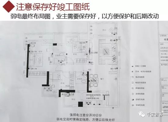弱電驗收的過程中,如果一些線路沒有標記用途的,可以要求工人給標記上。同時驗收完成之后,為防止施工過程中的對原設計圖紙進行了改動,需要要求設計師重新畫出最終設計布線圖,業主注意保存好,以便今后的保護與維修。