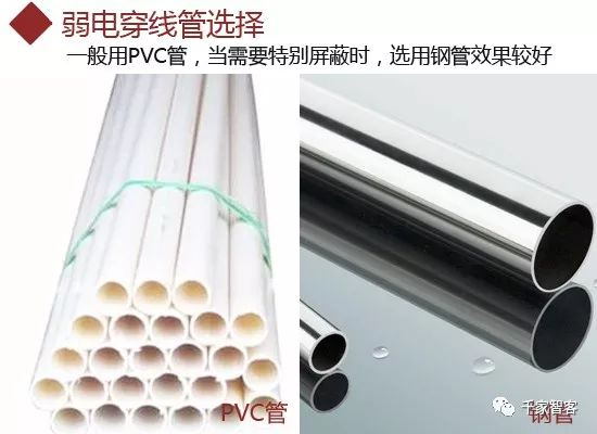 弱電所穿線管應采用鋼管或硬質PVC管,PVC管價格相對便宜,比較常用,但是對信號屏蔽效果沒有銅管好。因此,如果所步線路存在局部干擾源,且不能滿足最小凈距離要求時,應該采用鋼管作為穿線管。