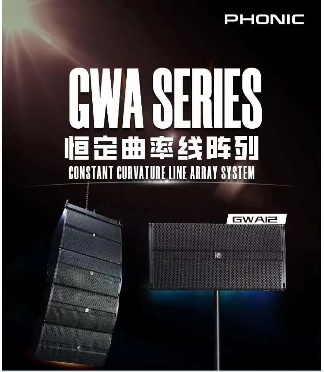 PHONIC CORPORATION 的 GWA 系列是為滿足演出租賃公司和系統集成商日益多樣化的需求而開發 的,該產品提供了較佳的觀眾覆蓋率, GWA 系列由 12"恒定曲率陣列全頻和 18"可飛行的超低音組成,卓越的音質和靈活的垂直/水平擴聲技術,使得 GWA 能夠適應任何項目的需求。