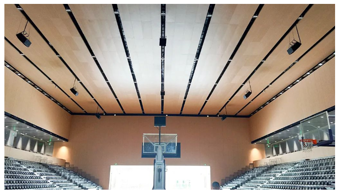 作為城市的文化名片,體育場館一如既往地將城市特色文化、實用性以及功能性完美的結合起來。場館在垂直向上進行疊加,布置了8大功能場館:游泳館、籃球場、羽毛球館、網球館、乒乓球館、擊劍館以及舞蹈室等多個專業賽事級別運動場地。不僅提供基本體育設施服務,還能滿足中小型賽事、體育運用與文化等多方面需求,同時,簡上體育綜合體在重塑城市精神和社區生活中扮演重要角色,滿足市民文化體育休閑娛樂健身等各項需求。 其中一層多功能綜合館,面積超過1200平方米,包含2000個坐席和3個籃球全場,可以承辦中小型賽事和活動。在擴聲系統的選擇上,面臨著場館層面積大,層高深,混響時間長,設備選擇需要滿足大聲壓級、高靈敏度、適合長距離投射和體積輕巧能減少高空懸掛的負荷,確保滿足極佳的指向性控制,保證音色的一致性,具備優異的安全性和穩定性。