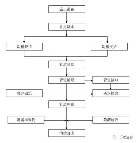 排水系統(tǒng)施工工藝流程圖: