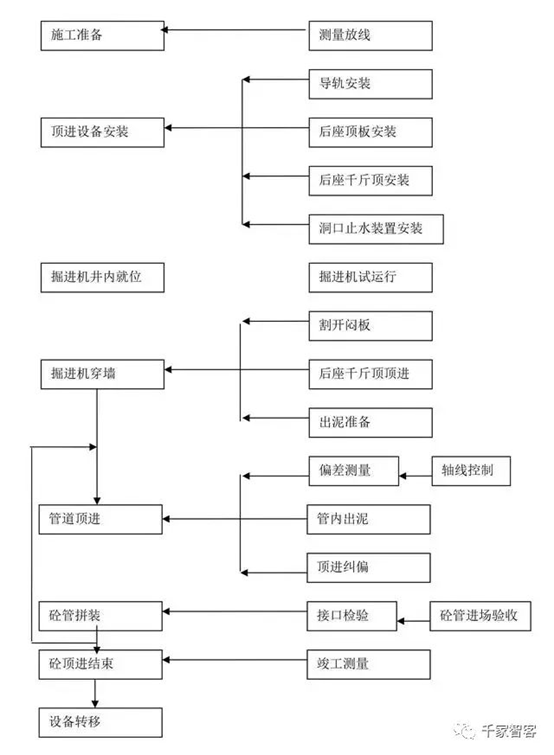 頂管工程主要工藝流程: