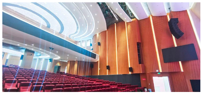 禮堂觀眾廳設置有兩層樓座,可容納近600位師生。校方要求擴聲設備不但要具有高品質、語言清晰度,聲音要親切自然,洪亮飽滿;技術要富有現代感且穩定可靠,外觀要簡約不乏設計感,能很好的融入使用場景。