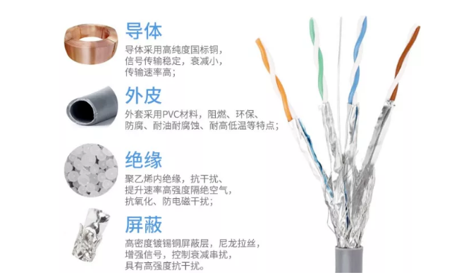 七類線線芯使用的是直徑近 0.58mm 優質無氧銅為傳輸導體,比6類線稍粗一點點,選用化學發泡絕緣,極大提高了單根導體傳輸才能。