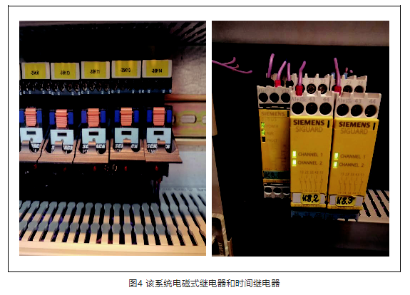 在舞臺機械電氣控制系統中,繼電器是其中必不可少的部件。繼電器的種類很多,通常分為保護繼電器和控制繼電器兩大類。該系統曾發生因繼電器損毀致使轉臺不能轉動的故障。該系統的電磁式繼電器和時間繼電器見圖4。