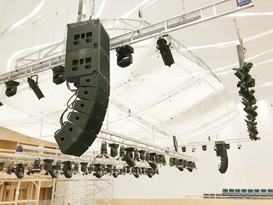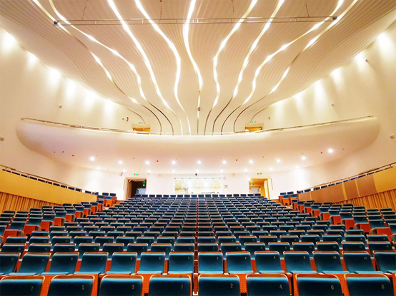 ▲經過層層選拔,其中音樂廳和多功能廳的電子擴聲系統選擇了美國VUE音響系統,項目由名舞臺公司技術團隊設計并指導施工。