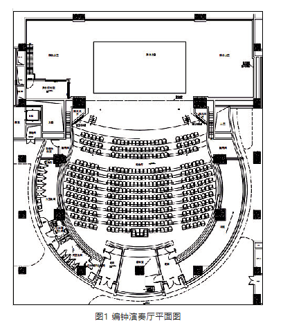 2)不同的音樂(lè)演出,音質(zhì)要求有所不同。尤其是編鐘演奏廳這類使用功能單一的廳堂,音質(zhì)設(shè)計(jì)時(shí)應(yīng)充分考慮樂(lè)器的發(fā)聲特點(diǎn)。