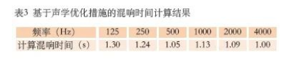 聲學(xué)優(yōu)化后,混響時(shí)間計(jì)算結(jié)果如表3所示。