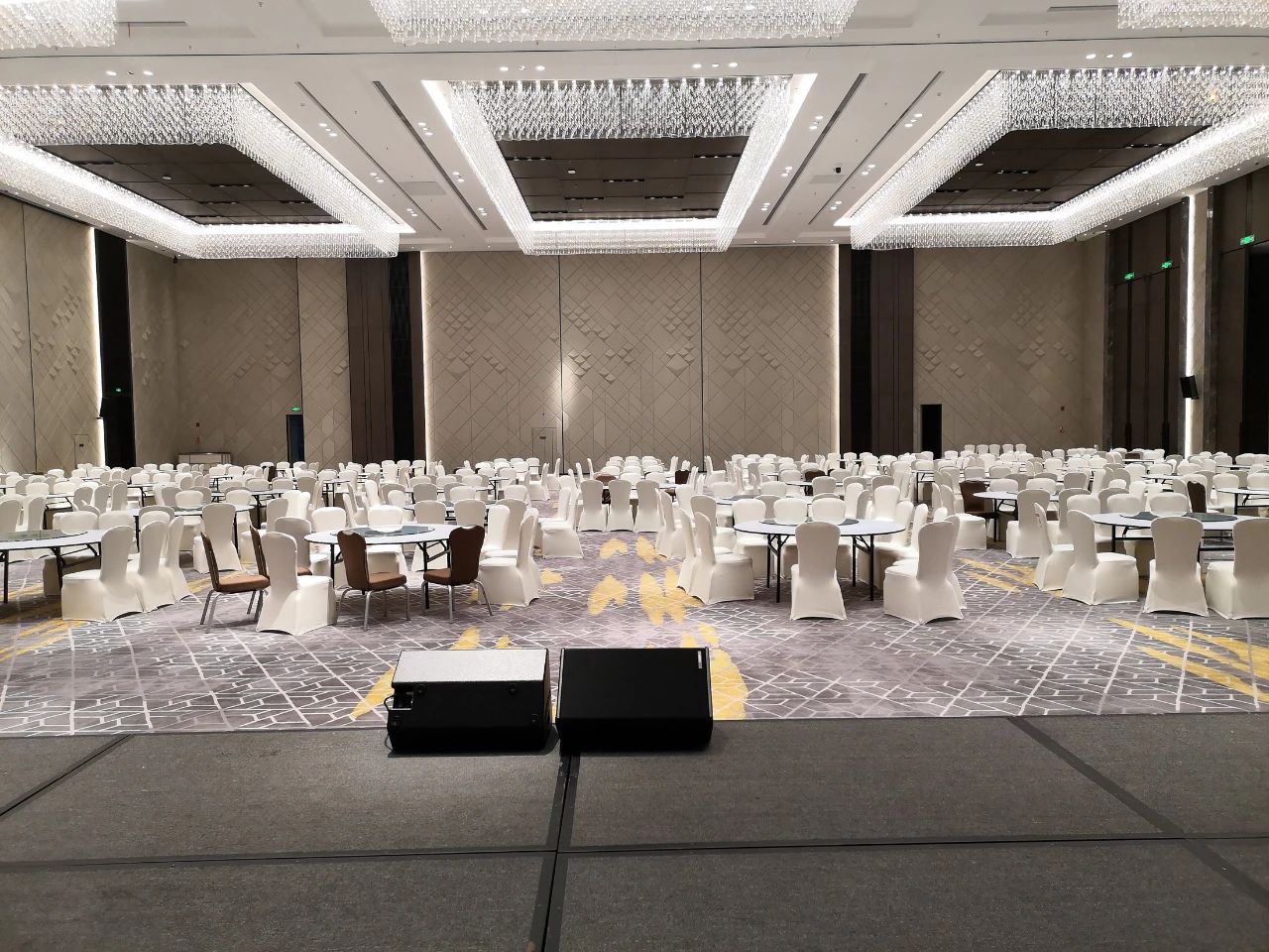 經過技術人員的最后調試,整個音頻擴聲系統滿足酒店宴會廳舉辦各類活動的擴聲需求。不僅系統功能強大和操作簡單,而且在使用上流暢和穩定,讓整個宴會廳聲場飽滿,聲音細膩還原力強,清晰地覆蓋每一個角落,獲得現場工作人員的一致肯定。