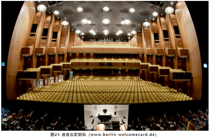對于歌手而言,提供<35ms早期反射聲,只有舞臺上布景的反射以及臺口側墻(包括臺框和臺口側包廂或樓座欄板)的散射能夠做到。對于樂隊而言,下沉式樂池四周的墻面、懸挑的頂部以及池座上部的包廂欄板等都能提供充足的<35ms早期反射聲。