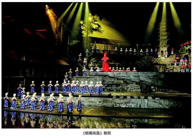 其實(shí),這個(gè)方法之前也曾多次使用。不過這次的實(shí)踐讓筆者發(fā)現(xiàn),很多情況下聲音的獨(dú)特效果可以根據(jù)舞美場(chǎng)景,甚至利用舞美裝置的特性來實(shí)現(xiàn)。這一點(diǎn)以后也可以繼續(xù)跟音響師們研究探討,從中發(fā)現(xiàn)、挖掘并再現(xiàn)出契合戲劇創(chuàng)意的聲音效果。例如,國(guó)外有的錄音棚用老教堂或者工廠廠房改造,以得到想要的聲音效果,包括好萊塢的電影錄音。這具有無限拓展的可能性,因?yàn)槊恳环N聲音在不同的空間都會(huì)是不同的,關(guān)鍵也在于音響師是否有主觀創(chuàng)新的想法,畢竟對(duì)于多數(shù)戲劇音響設(shè)計(jì)來說,音響師首先要保證的是戲劇對(duì)聲音的基本要求,然后才是個(gè)性化需求。另外,音響師對(duì)舞美空間的解讀也尤為重要,舉個(gè)例子,幾年前參加湖南鳳凰的《煙雨鳳凰》實(shí)景演出項(xiàng)目的舞美設(shè)計(jì),景的縱深有50 m多,一側(cè)是用于造景的山,一側(cè)是吊腳樓,中間風(fēng)雨橋作為兩者的連接,遠(yuǎn)處縱深就是利用實(shí)景的山和樹林。該劇的音響師就根據(jù)這樣一個(gè)悠遠(yuǎn)的空間環(huán)境,制造從左到右的聲像差,形成由遠(yuǎn)及近的聲音效果,的確讓觀眾感受到了空間距離上聲音傳遞效果,十分契合舞美所營(yíng)造出的氛圍。