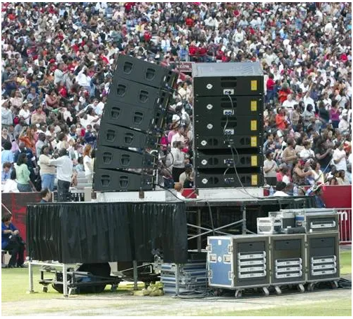 因為放置在其他揚聲器頂部的那些揚聲器可能會因為振動而從上面掉落。所以在現(xiàn)場,我們通常需要使用卡車皮帶將它們綁在一起,以防止揚聲器被振落。